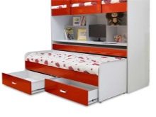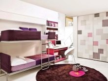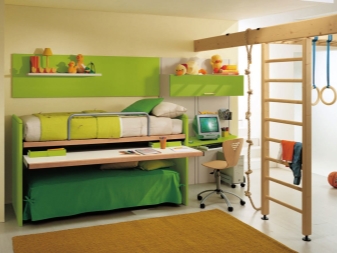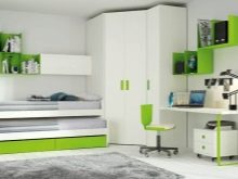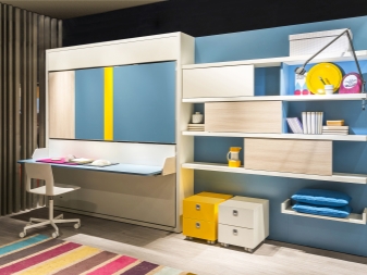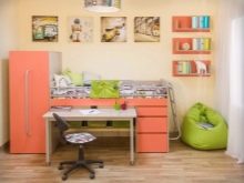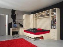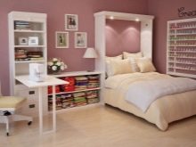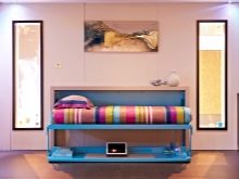 - За ученик един от най -добрите варианти би бил детско трансформиращо се легло., в който два обекта сменят местата си ден и нощ: през деня леглото се издига нагоре, а масата се движи надолу. Под масата има достатъчно място за съхранение на дребни предмети или играчки. Предимството на този дизайн е, че в детската стая винаги ще се поддържа ред и ще има достатъчно свободно пространство за игри..
