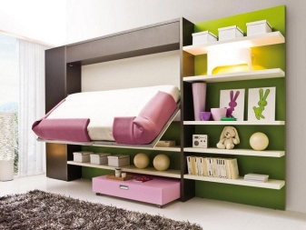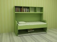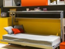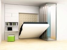 - Повдигащо се сгъваемо конвертируемо легло може да се прикрие като други мебели в апартамента, например, като се монтира в килер или стена. Пневматичен механизъм го повдига и поставя на специално определено място. Най -често това е двойно легло за възрастни, но има и подобни модели, предназначени специално за деца. Самият механизъм е доста лесен за използване и дете в училищна възраст ще се справи с него без затруднения..