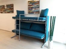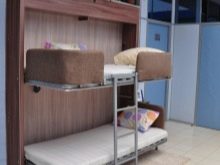 Пуф легло Клиентите го наричат „кутия за изненади“ и с готовност го купуват като подарък за семейството и приятелите, защото такава оригинална мебел представлява не само естетическа красота, но и предимства: сгъваемо легло вътре може да бъде полезно по всяко време. Детските двуетажни легла-трансформери с различни модификации буквално “спасяват” положението на родители, които имат две деца. Това позволява не само да се организират удобни места за спане и за двамата, но и да се спести място в детската стая..