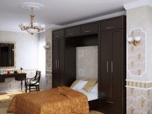Един от най -популярните варианти за спалня е конвертируем гардероб. Той е идеален за тези, които искат да спят на изключително голямо легло и въпреки това да спестят място в стаята. Дрехите и спалното бельо са поставени в килера и поради факта, че леглото се сгъва горе през деня, спалнята винаги ще изглежда спретнато и хармонично.