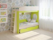 В цвят лайм или мед можете да подредите двуетажно легло за деца в училищна възраст или легло за тийнейджърка.