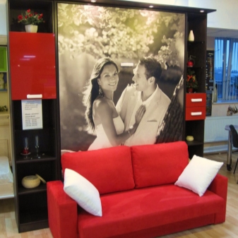 Ако има желание и възможност, тогава мястото за спане на трансформатора може да бъде подредено така, че при сгъване да се слее напълно с околната среда и да бъде напълно невидимо. Дизайнерите използват фототапети, щампи с различни цветове и качества, които се сливат с основната част от мебелите, присъстващи в хола..