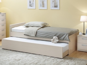 - Разтегателно легло с разтегателно легло – това е един от най -простите модели: резервно легло е вградено в друго. С негова помощ можете да оптимизирате пространството, а възможността за организиране на второ легло ще бъде налична по всяко време..