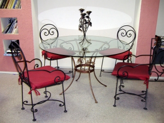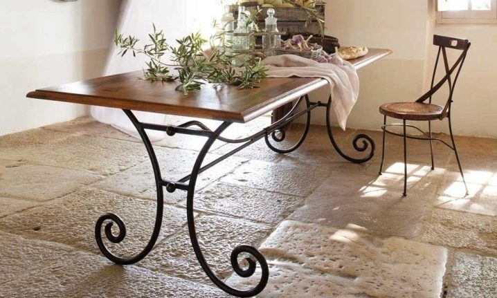 Дизайните на масата са много популярни, при производството на които се използват ковани крака. Стъкленият плот за маса съвпада перфектно с опорите от ковано желязо и се вписва идеално във всеки интериор на апартамент или къща. Това е лаконична комбинация, която винаги остава модерна и актуална..