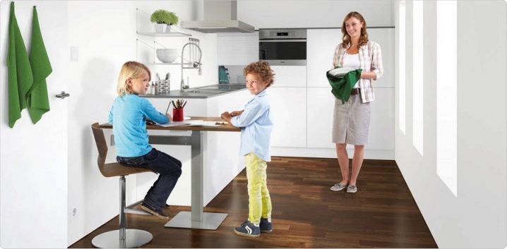 Освен това, благодарение на такова устройство, можете да изберете желаната височина на масата и да я трансформирате от голяма трапезария в малка масичка за кафе. Ще имате и възможност да го регулирате в съответствие с растежа на домакинството, като направите малка детска маса от голяма маса.