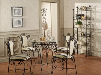 Коването може да има преплитане на ажурни линии и най -необичайните шарки, които се допълват от крехко стъкло под формата на плот за маса. Прозрачната повърхност на масите ви позволява да привлечете вниманието към тези крака и да ги направите акцент в тази мебел. Кованите крака за маса го правят по -стабилен и тежък. Ще бъде трудно да преместите такава маса самостоятелно, но в същото време тя ще бъде стабилна на мястото си..