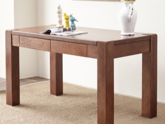 Подпорите от масивно дърво перфектно допълват всякакви дървени мебели. Те ви позволяват да подчертаете високия социален статус на собственика на къщата. Такива опори са доста скъпи и следователно увеличават цената на масата като цяло. За да избегнат това, производителите често използват комбинация от евтини дървени и метални опори..