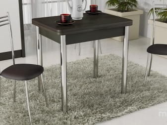 Металните крака могат да бъдат или класически прави, които функционират като опори, или плъзгащи се, сгъваеми и сгъваеми. Такива опори най -често се използват при производството на конструкции за маса за хранене. В този случай се използва хром или полиран метал..