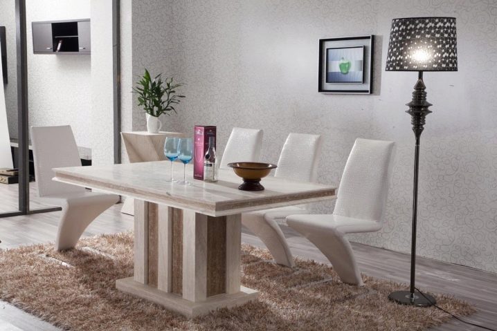 Поставките за маса имат доста сдържан и лаконичен дизайн и се отличават със своята гъвкавост. Ето защо най -често те се инсталират в по -строги помещения по отношение на интериорния дизайн..