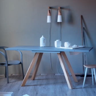 Такива опори най -често се използват за допълване на офис мебели. Сгъваемите крака ви позволяват да направите мебели многофункционални и по -удобни за използване. Такива модели са незаменими, ако пространството, където ще бъде поставена масата, е ограничено и малко. Те имат доста прост и удобен механизъм, но в същото време имат бюджетни разходи..