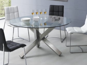 Ако искате да запълните интериора с лекота, тогава стъклените крака за маса са за вас. Плотовете могат да бъдат направени от подобен материал. Това е чудесно решение за тези, които имат много кристални и големи мебели с отворени стъклени рафтове у дома. Те ще подчертаят изискания вкус на собственика на къщата.