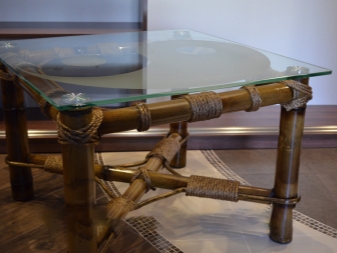 Ако искате по някакъв начин да разнообразите интериора на стаята, можете да закупите модел, изработен в африкански стил. Това може да бъде стъклена маса с бамбукови опори. Красивите бамбукови тъкани изглеждат много елегантни и изпълват структурата с лекота. Преплитането се развива в цели лабиринти, можете да им се възхищавате завинаги.