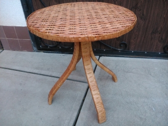 Освен бамбук, популярни са и други плетени крака. Те са идеални за тези, които искат да оборудват лоджия, вила или селска къща. Това е чудесно решение за интериори в селски или селски стил. В този случай тъкането се извършва от лози или тънки клонки. Това са много гъвкави и грациозни крака, които перфектно допълват дървени или стъклени маси.