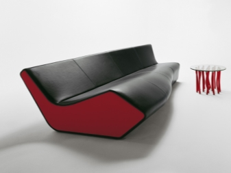 Диванът се счита за противоположния и смел модел. "висока технология". Тук няма да намерите мека пелерина и сладък печат, само основни бели или черни тонове. Червените възглавници могат да се използват като акцент за снежнобял диван, но само полусферичната форма на модела го прави необичайно ярък и необичаен. Мебели от подобни стилове обаче могат да се използват за поддържане на високотехнологичния стил. Така че един прост модел с подлакътници в снежнобял дизайн ще подхожда на всеки от съвременните стилове, когато бъде допълнен с различни аксесоари..