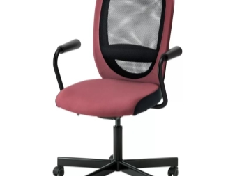 - Въртящ се стол на колела в приятен тъмно розов цвят Флинтан (номинел) с полипропиленова тапицерия, идеална както за домашна, така и за офис работа. Характеристика на този модел е мрежата на гърба му, която удобно пропуска въздуха. Мрежата е изработена от издръжлив материал, така че може да се накланя свободно на гърба. Има специална опора за лумбалната област, а колелата са оборудвани с предпазна спирачка, която поддържа стола неподвижен, когато седите или се качвате на него.