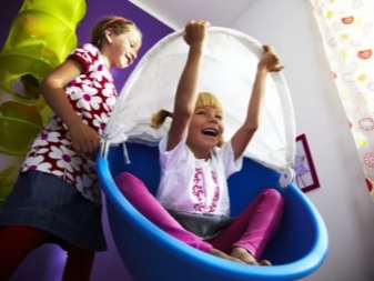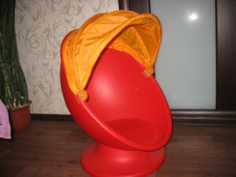- Овален въртящ се стол, подобен на яйце “Лемск” предназначени също за укрепване на вестибуларния апарат на детето. В детските развлекателни центрове често можете да намерите подобни модели, висящи във въздуха. Ако спуснете тентата, детето ще бъде в нея, като в пашкул и с удоволствие ще се върти, което е много полезно за развитието. Предлага се допълнителна възглавница за седалката.