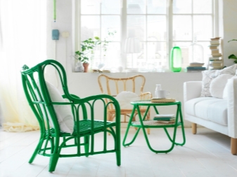 - Модели от ракита в бял или кремав цвят, в допълнение към използването у дома или в страната, те са много популярни сред фотографите, които оборудват творческо пространство за заснемане със собствените си ръце. Мебелите от плетена светлина създават неописуема атмосфера във всяко пространство за стрелба, където се провеждат лирични и романтични фотосесии за момичета. На снимката такива столове не се различават от мебелите от естествени материали, което придава на пространството допълнителна лекота и престиж..