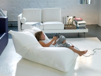 Една от техните характеристики е, разбира се, широк асортимент, благодарение на който се различават по форма, тегло, материал на производство, цел на приложение, характер на дизайна. Има столове с обичайната класическа форма, има екстравагантни и забавни „чанти“ и висящи опции за отдих, подобни на хамак, които дори са прикрепени към тавана.