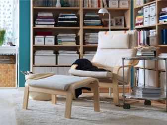 - Разбира се, заслужава да се спомене още веднъж удобното и удобно модели от серията Poeng. Асортиментът предлага два вида столове: обикновени и люлеещи се, идеални за хора, които искат да получат максимална степен на релаксация, докато релаксират. Гъвкава рамка, изработена от естествено дърво, за да поддържа правилно врата и гърба, за да се избегне дискомфорт и напрежение. Като приятно допълнение към серията Poeng, IKEA също произвежда табуретки и многоцветни корици.. Наскоро в продажба се появиха калъфи от естествена кожа, придаващи на стола особен комфорт и чар. Те могат да бъдат закупени отделно.