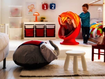 Пълнителят, използван за пълнене на торбички и подвижни възглавници, обикновено е полиестер или полипропилен. Такива пълнители са хипоалергенни, нямат благоприятна среда за появата на микроби и натрупването на влага, така че всеки стол може безопасно да се постави в детската стая.