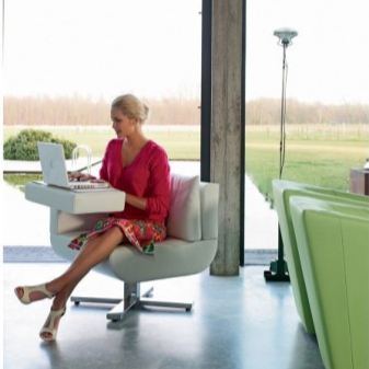 Дизайнът без подлакътници е печелившо решение за организиране на ъгъл за четене на книги и домашно кино на малка площ от жилищно пространство, място за работа с лаптоп и за практикуване на любимите ви хобита, като плетене. Това е най -добрият вариант за обзавеждане в малки апартаменти, където липсата на място се превръща в основната причина за усещането за теснота и дискомфорт. Благодарение на дизайнерските характеристики на този продукт, нищо няма да попречи на собствениците му да се отпуснат и приятно да си починат, да слушат любимата си музика или да гледат завладяващ филм..