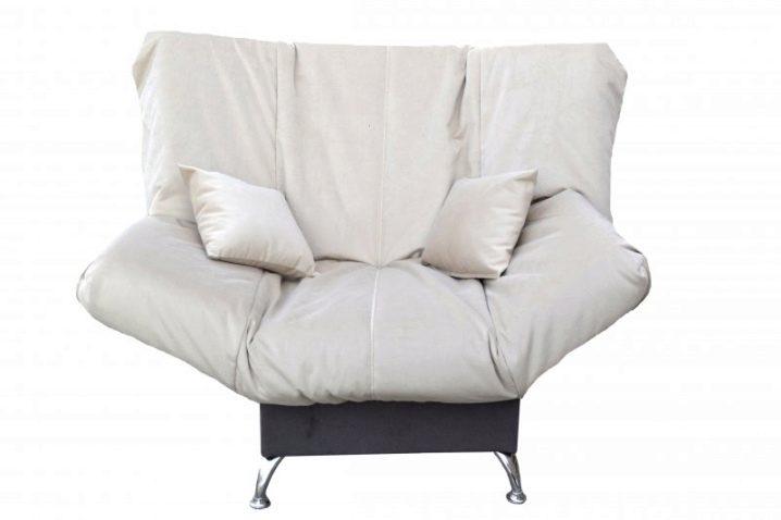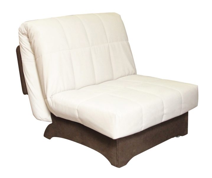 - Кресло-легло с технология щракване и затваряне – идеален за малка спалня. Има три вида добавяне. Благодарение на тази дизайнерска особеност, собствениците на стол-легло без брони за ръцете имат възможност да сменят позициите си по време на сън, дори ако седалките са много тесни..