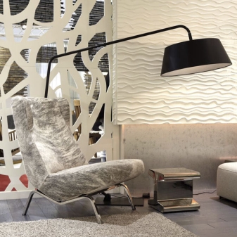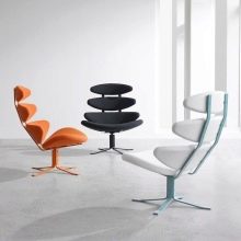 - Известният датски декоратор Ларс Ларсен измисли изключителна мебелна структура, наречена “Корона”. Това е седалка без ъгли и 45-градусова облегалка. Материалът за тапицерията е естествена кожа. Както е замислено от автора, столът може да бъде с различни тонове..