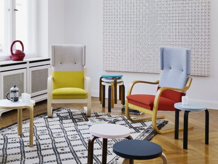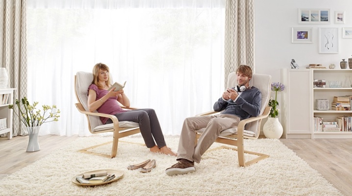 - Люлеещ се стол Poeng. Краката на този модел са удължени и огънати нагоре, образувайки примка. Ъгълът на закръгляване на краката е не повече от 35 градуса от равновесното положение, така че няма опасност столът да се преобърне. Въпреки вече наклонената позиция, ъгълът между седалката и облегалката все още е 90 градуса.