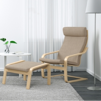- Poeng табуретка за крака. На пръв поглед безполезно нещо. Но това е чудесно допълнение към класическия фотьойл. При проектирането на изпражненията се вземат предвид и физиологичните характеристики на човешкото тяло. Табуретката има неравна повърхност, тя е наклонена. Височината на единия ръб е малко под височината на седалката на класически стол и е 39 см, а височината на другия е 36 см. Този наклон дава възможност да отпуснете краката си след тежък работен ден.