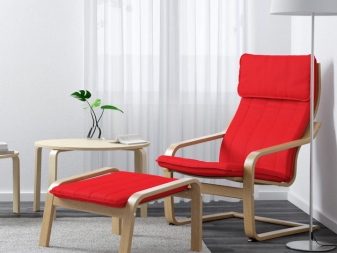- Люлеещ се стол Poeng. Краката на този модел са удължени и огънати нагоре, образувайки примка. Ъгълът на закръгляване на краката е не повече от 35 градуса от равновесното положение, така че няма опасност столът да се преобърне. Въпреки вече наклонената позиция, ъгълът между седалката и облегалката все още е 90 градуса.