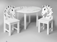 - В детската стая можете да вземете малка кръгла маса с диаметър не повече от 70 см, тъй като децата не обичат твърде обемисти предмети и се чувстват по -удобно сред мебелите с компактни размери. Малка кръгла детска маса е чудесно решение за забавни настолни игри за вашите деца.