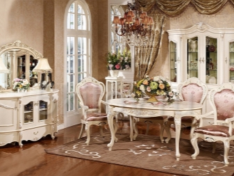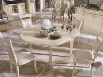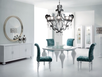 Много е важно да изберете останалата част от обзавеждането: столовете със сигурност трябва да съответстват на дизайна на масата, която сте избрали, също така е важно фасадите на другите мебелни елементи да са в хармония с основния цвят на плота на масата.