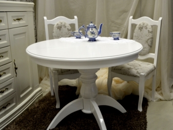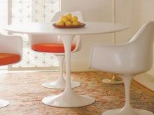 - Моделите на кръгли маси на един крак са много популярни. Солидната масивна централна опора прави цялото долно пространство свободно, което позволява на всички членове на семейството да седят с най -голям комфорт по време на хранене. Бяла кръгла маса на красив резбован крак е чудесен вариант за кухня във всеки стил – от добра класика до най -модерния формат.