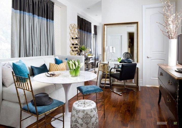 Особено внимание трябва да се обърне на факта, така че светлите мебели да не се сливат твърде много с цвета на стените в стаята.