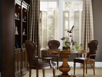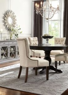 Кръгла маса в интериора на хола ще добави завършеност към нея и ще бъде хармонично комбинирана с други видове мебели.