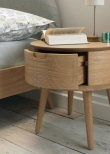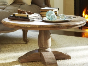 В допълнение, този атрибут може хармонично да се впише в стила на стаята, където се намира. В хола и в залата би било подходящо да изглеждате като заоблена масичка за кафе, изработена от дърво на единия крак. Ако продуктите под формата на правоъгълник могат да изглеждат твърде обемисти и не са подходящи за малки апартаменти, тогава закръглени маси се счита за по -компактен и изглеждат елегантно при такива условия.