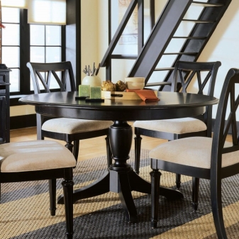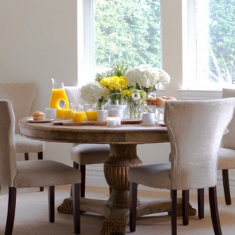 Кръгла дървена маса може да бъде централната част на кухня или трапезария в хола. Такива мебели могат да се превърнат в място за събиране на цялото семейство за семеен съвет, за чаено парти или просто за вечерно забавление. Стилни столове ще допълнят визията си с елегантните си параметри..