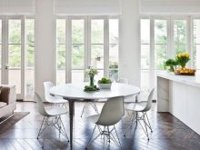 Ако параметрите на стаята позволяват, маса, поставена навсякъде, ще бъде най -доброто решение за стилен интериор. Днес апартаментите под формата на студио стават модерни. Тяхното оформление включва комбиниране на кухнята и други пространства. Кръглата маса е най -добрият вариант за този тип жилища.. Основното е да изберете правилните параметри и стил на дизайна на продукта..