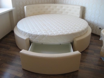 За тези, които искат да разнообразят интериора, но не са готови да спят на кръгло легло, или просто не искат да се занимават с намирането на подходящо спално бельо, дизайнерите са измислили специален тип легло. Това е модел с правоъгълен матрак на кръгъл подиум. Това е перфектната комбинация от познати форми и необичаен външен вид..