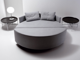 Що се отнася до материалите, използвани при производството на кръгли мебели за спане, те обикновено са естествени или имитация на кожа, въпреки че има и модели, изработени от устойчиви тъкани. Кожените изделия се вписват идеално в съвременния интериор.