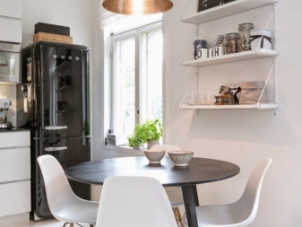 - Когато избирате кръгла маса, разчитайте преди всичко на компетентното използване на пространството на вашата стая. Не забравяйте, че където ще се монтира тази мебел, тя трябва да е достатъчно просторна, тъй като компактната й инсталация срещу стена е невъзможна..