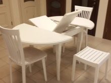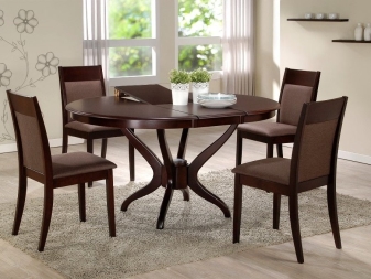 - Синхронно плъзгащи са кръгли маси с механизъм, наречен “пеперуда”. За да разгънете такива мебели, е необходимо да издърпате единия ръб на плота, след което той ще се разпръсне в центъра и ще корозира. За да направите това, просто трябва да вземете допълнителен елемент от основата на таблицата и да го инсталирате в появилото се свободно пространство..