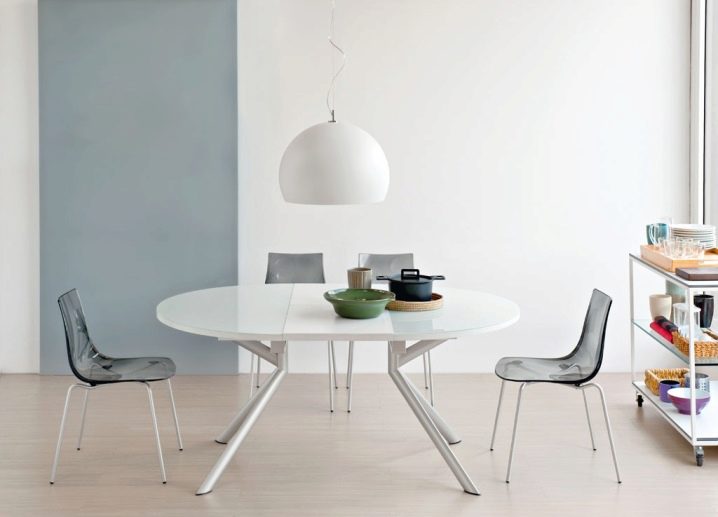 Кръгли, полукръгли или овални маси са елегантни и спретнати по дизайн. С помощта на такива мебели можете да омекотите и да придадете изтънченост дори на най -простите или груби интериори. В допълнение, заслужава да се отбележи не обемният външен вид на такива мебели. Това е особено вярно за атрактивни сгъваеми или плъзгащи се модели..
