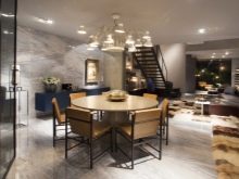 Кръглите маси изглеждат органично в много стилни интериори. Няколко модерни дизайнерски решения: