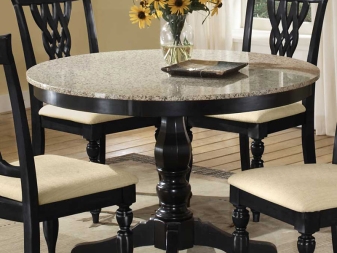 Каменните маси изглеждат скъпи и елегантни в много интериори. Материалът може да бъде както изкуствен, така и естествен. С помощта на такива мебели можете да придадете на интериора особен лукс и да обърнете внимание на отличния вкус на собствениците на дома. Най -често обаче такива модели не са евтини, особено за шикозните мраморни варианти..