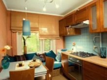 - Когато избирате диван с легло в кухнята, трябва предварително да помислите къде ще бъде разположен диванът.. Оставете малко място за преместване на масата и ако е необходимо, подредете зоната за спане.