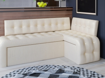 Ъгловият диван ще бъде най -удобен за кухня с малка площ. Винаги изглежда мъничко и често съдържа допълнително място за съхранение. От своя страна е по -удобно да се трансформира прав диван в легло благодарение на вградения в тях механизъм..