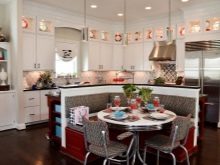 По правило кухненският диван се използва като елемент на трапезарията и съответно се използва като допълнителна зона за сядане на масата. Ето защо е важно тя да отговаря на височина на масата за хранене, в противен случай ще бъде просто неудобно за ядене..