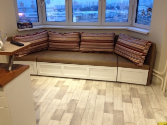 Предимството на кухненските дивани е, че много от тях имат специални слотове за съхранение, в които лесно можете да поставите както ненужни кухненски прибори, така и спално бельо. Той се превръща в своеобразен спасител за жителите на малки апартаменти, където няма толкова много места за съхранение и всеки сантиметър се брои..