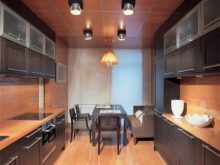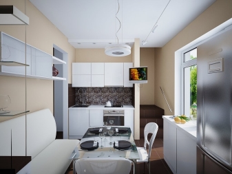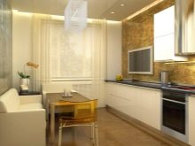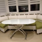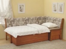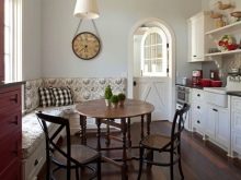 - Когато избирате диван с легло в кухнята, трябва предварително да помислите къде ще бъде разположен диванът.. Оставете малко място за преместване на масата и ако е необходимо, подредете зоната за спане.